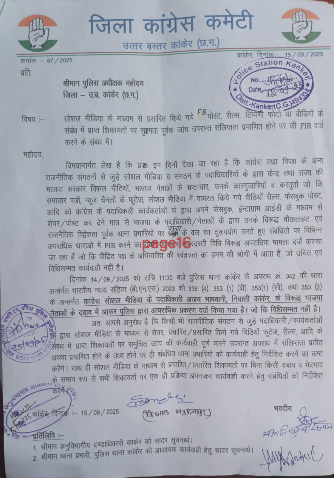 कांग्रेस ने ज्ञापन में कहा कि सोशल मीडिया पर समाचार चैनलों व सार्वजनिक मंचों पर वायरल वीडियोज़ साझा करना अपराध नहीं है। उन्होंने पुलिस प्रशासन से निष्पक्ष जांच करने और किसी भी दबाव में आकर FIR दर्ज न करने की अपील की।